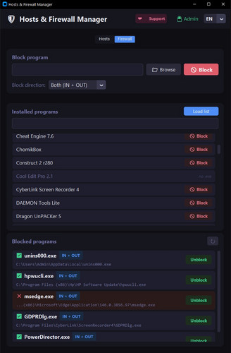 - Unblock programs with one click