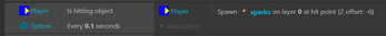 - Spawn object on hit — spawn any object at the laser hit point with layer and Z offset control