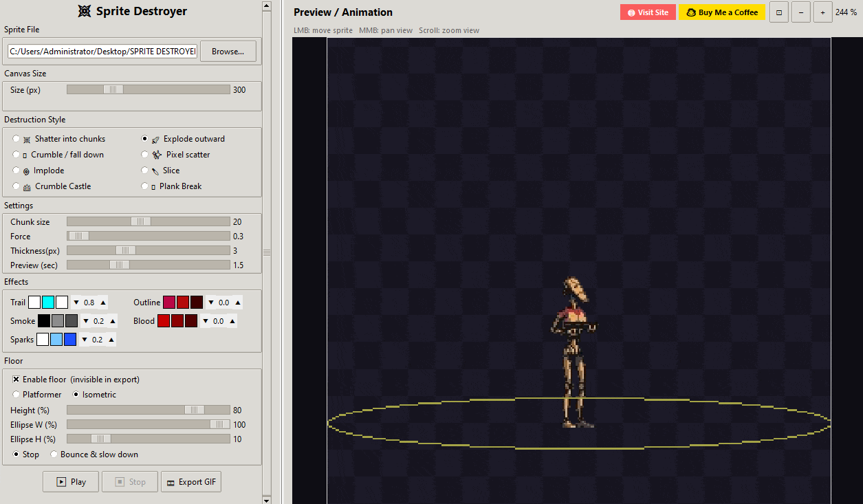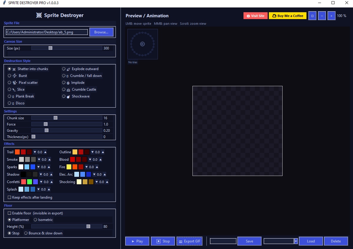 Sprite Destroyer is a lightweight desktop tool for animators and game developers who need satisfying destruction effects for their sprites.